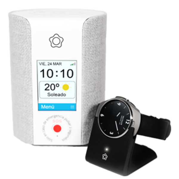 El sistema incluye un smartwatch con pulsador, que la persona protegida debe llevar consigo en todo momento. En caso de requerir ayuda, solo tiene que presionar el botón de emergencia para comunicarse con el servicio de asistencia de Securitas Direct. Además, cuenta con un botón rojo en la unidad central, proporcionando otra vía de contacto en caso de necesidad.